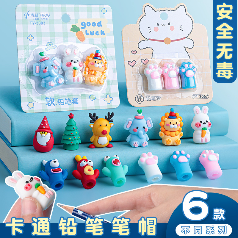 Kotak pensil silikon lembut imut pelindung pensil siswa aksesoris pena perpanjangan pensil anak-anak topi pena kartun grosir