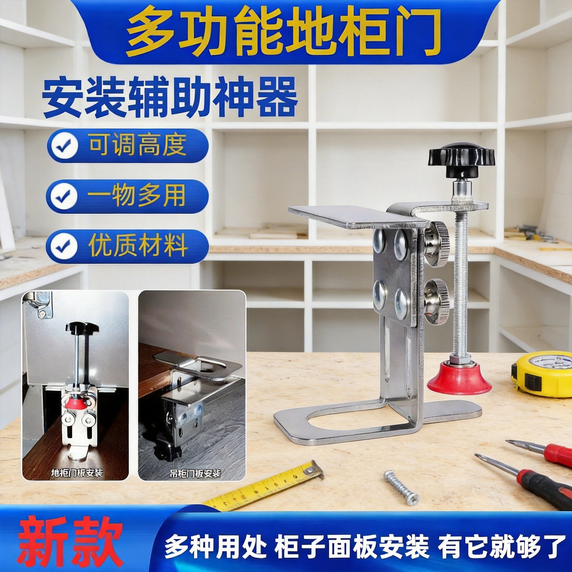 Alat instalasi pintu kabinet baja tahan karat multi-fungsi, papan penyangga lemari gantung, penjepit penyesuaian lemari, penjepit bantu untuk pekerjaan kayu