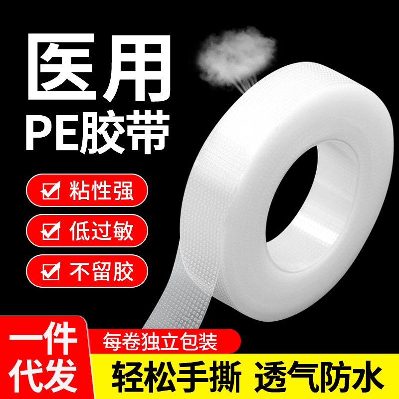 Plester medis, plester sensitif terhadap tekanan, film PE, dapat disobek dengan tangan, plester fiksasi, plester retak kering, kain bukan tenunan, transparan, dapat bernapas, plester tahan air.