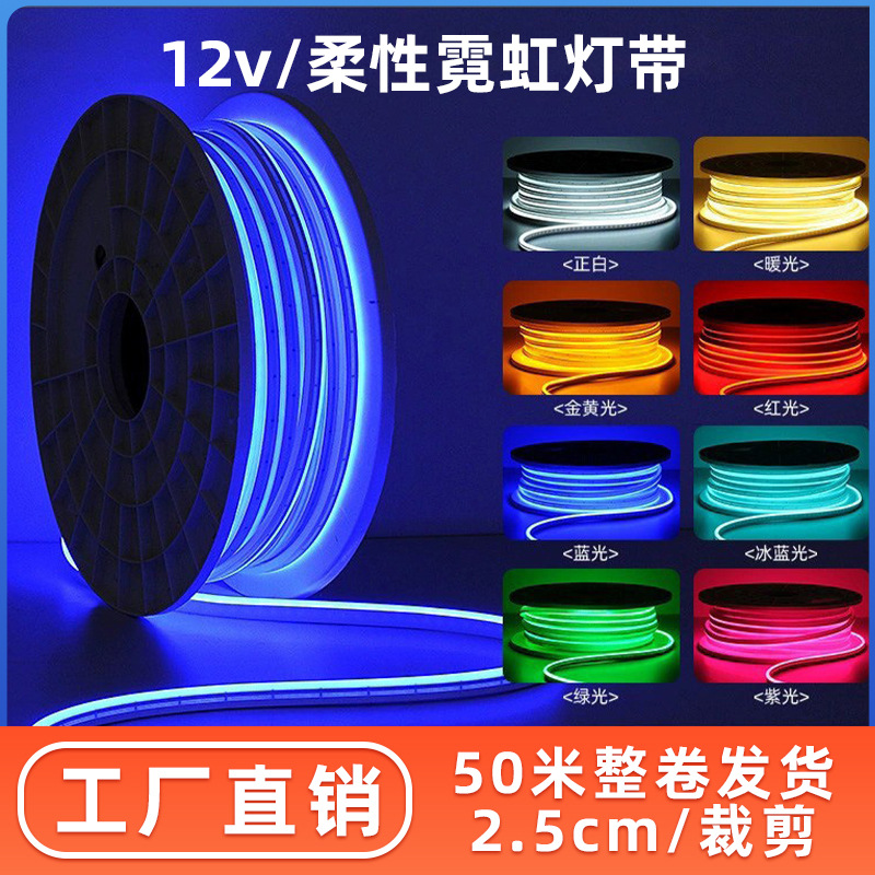 LED 50 m strip lampu neon fleksibel 12v warna-warni luar ruangan sorot iklan bentuk papan nama silikon tahan air cahaya lembut bar