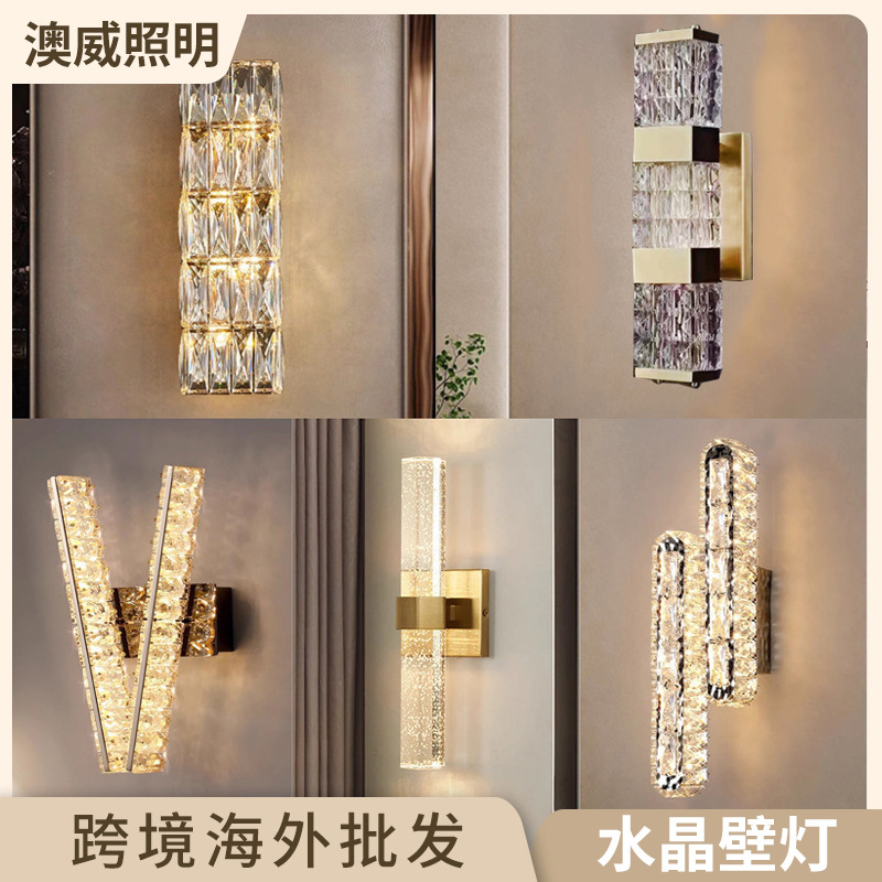 Lampu dinding kristal LED lintas batas, lampu dinding kristal gaya mewah untuk ruang tamu kamar tidur lampu samping tempat tidur Hotel Villa KTV, lampu dinding LED Teknik