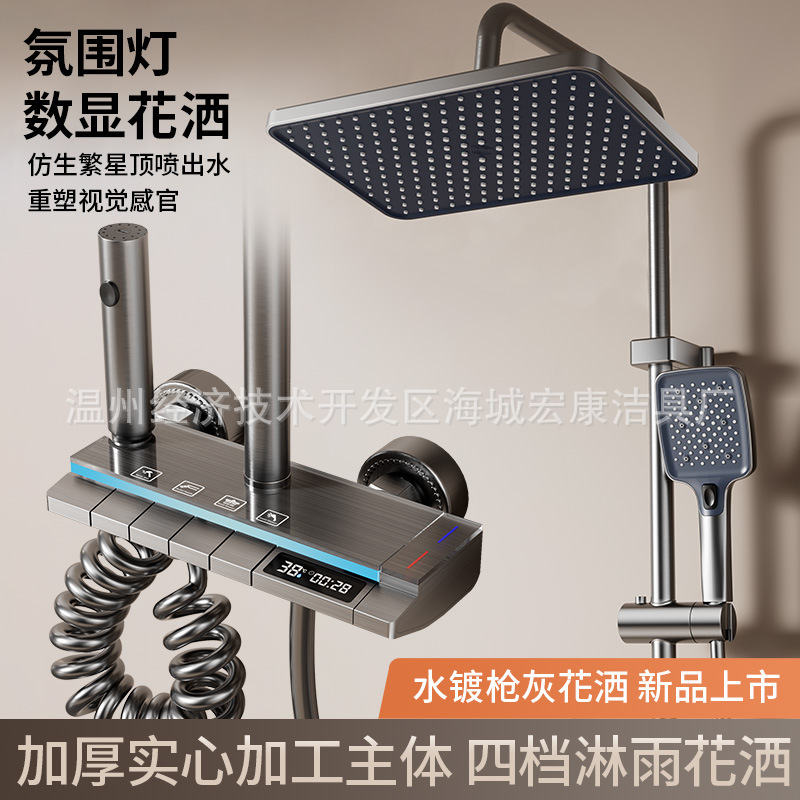 Pistol Berlapis Air Set Pancuran Mandi Warna Abu-abu Lampu Suasana Kamar Mandi Rumah Tangga Tabir Supercharged Suhu Konstan Suhu Digital