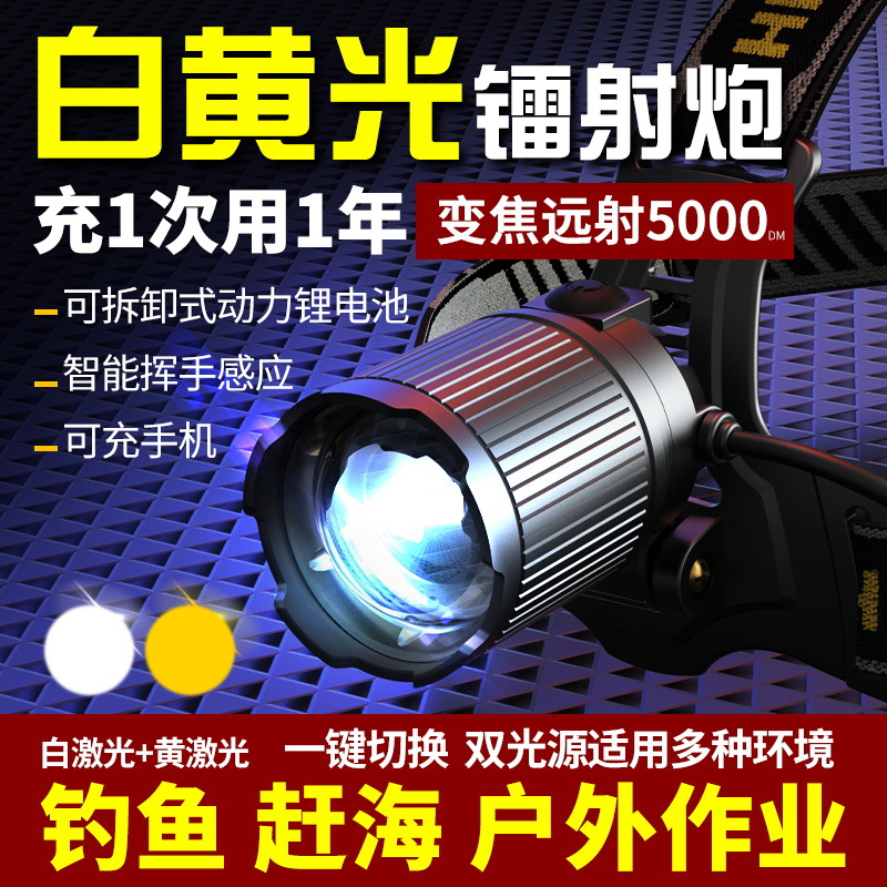 Lampu penerangan luar ruangan tipe kepala lampu senter super terang lintas batas cahaya terang lampu laser cahaya jauh lampu lampu terang terang fokus sensor cerdas