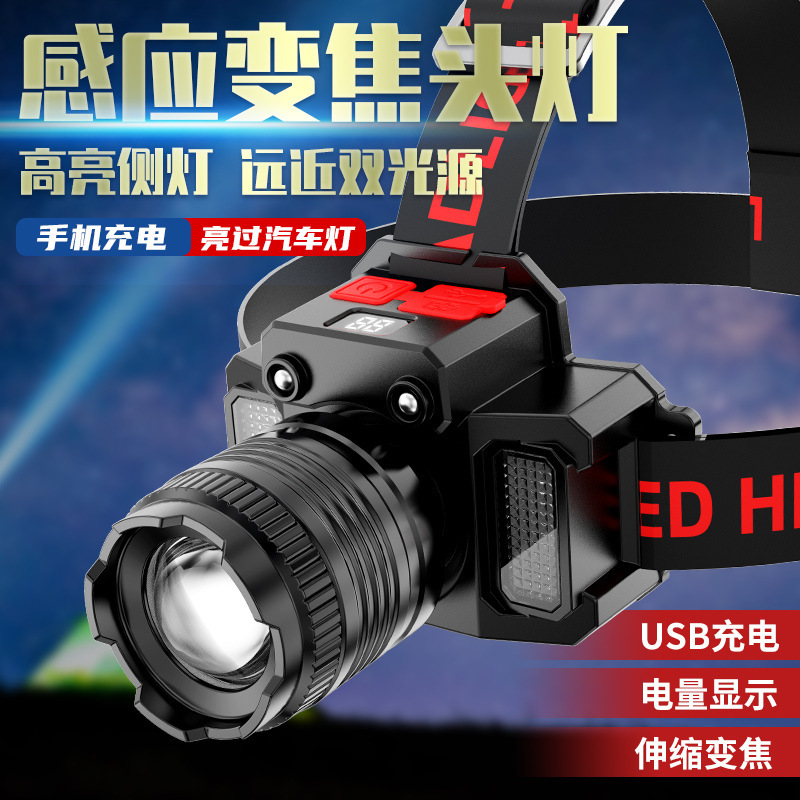 Tiktok cross-border lampu depan ringan kuat isi ulang jarak jauh lampu depan berkemah luar ruangan baterai lithium probe senter terpasang di kepala