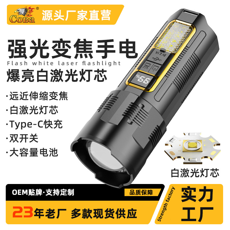 Senter multifungsi populer lintas batas meriam laser senter masa pakai baterai ultra-terang ultra-panjang lampu kerja cob cahaya kuat luar ruangan