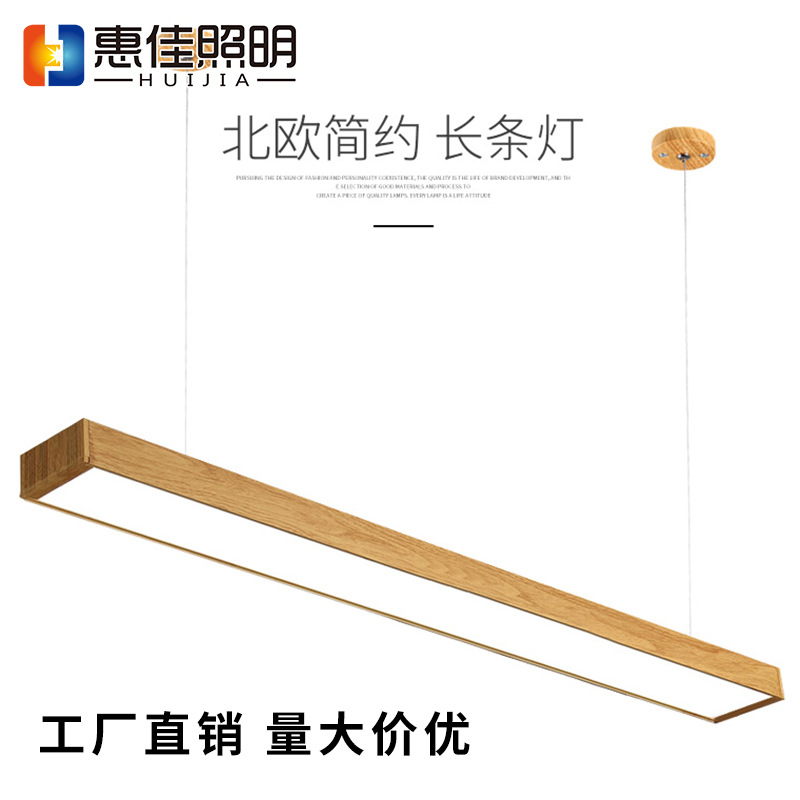 Lampu setrip led serbuk kayu Nordic, lampu batang kantor sudut kanan modern persegi panjang, lampu teknik kotak kayu