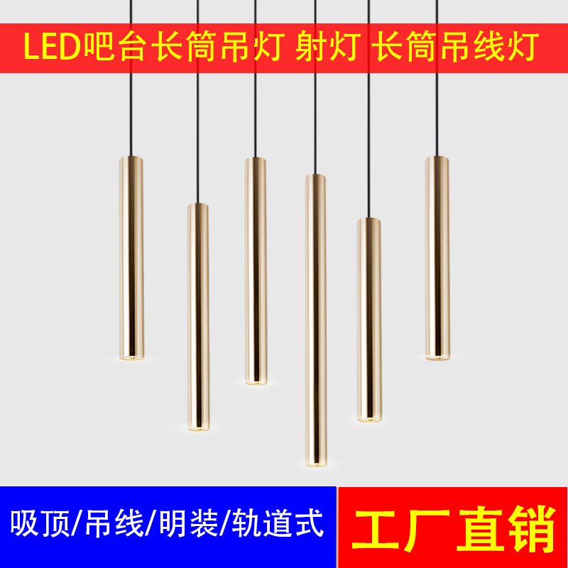 Lampu gantung led, lampu sorot led, lampu downlight, lampu gantung silinder panjang, lampu depan meja Bar, restoran Hotel supermarket