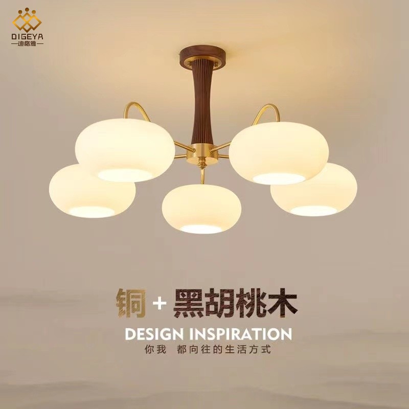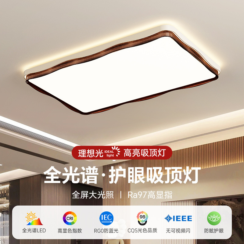 Lampu Ruang Tamu Pola Kayu Walnut Retro Model Baru Gaya Prancis Lampu Atap Model Baru Lampu Mata Kamar Tidur Paket Pintar Seluruh Rumah