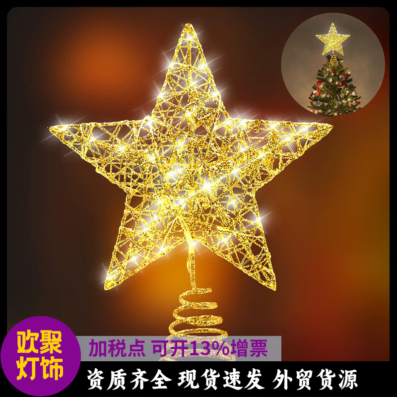 Amazon pohon Natal baru lampu hias led kawat tembaga lampu bintang besi gemerlap pohon Natal bintang atas dengan tali cahaya
