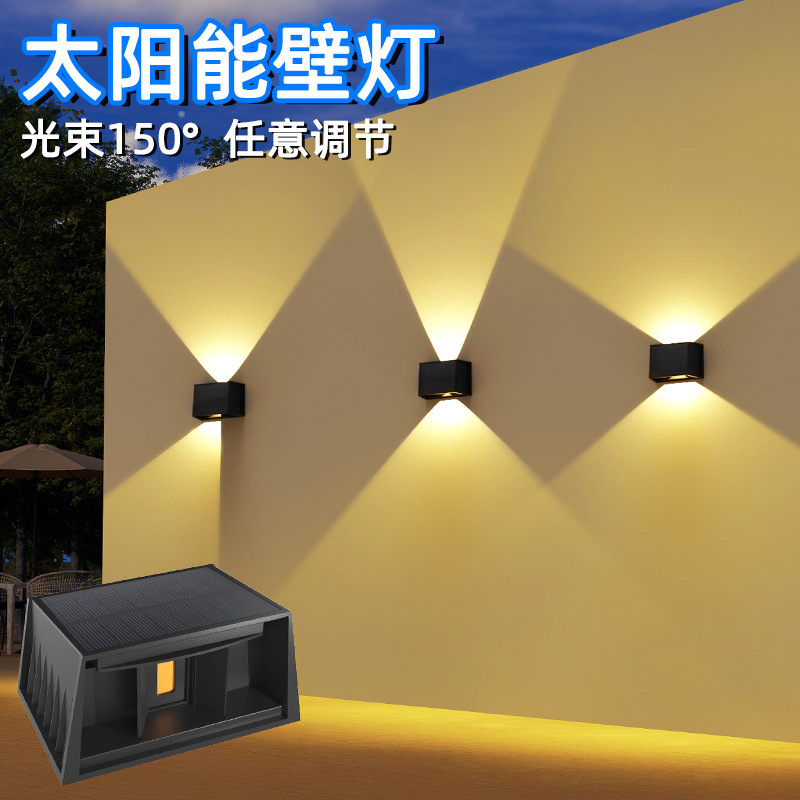 Lampu dinding tenaga surya baru dengan pencahayaan atas dan bawah, lampu wall washer RGB untuk halaman luar, tidak memerlukan kabel, lampu pagar tahan air untuk luar ruangan