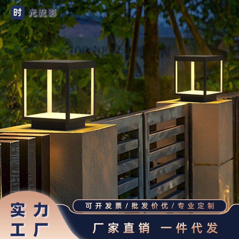 Lampu pilar matahari luar ruangan, lampu dinding tahan air untuk halaman vila, lampu pilar taman minimalis modern