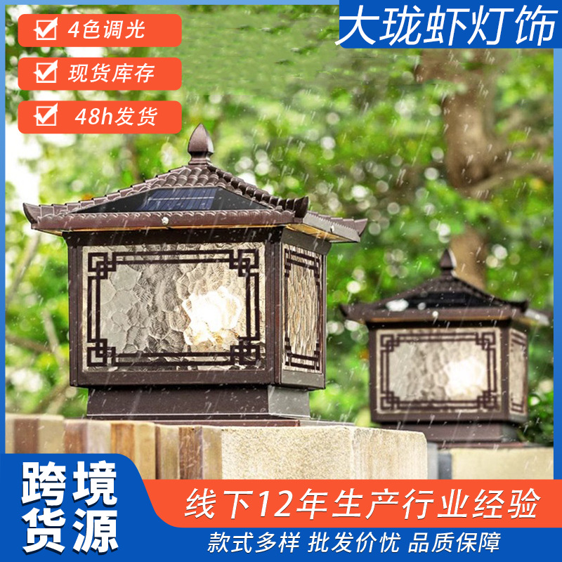 Lampu pilar surya, perlengkapan pemasangan tahan air lanskap dinding taman vila rumah, pintu nyala Luar Ruangan Tiongkok baru