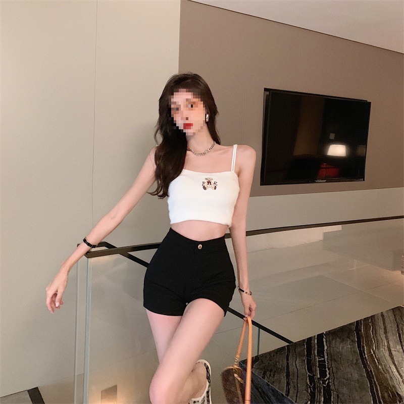 Celana Pendek Populer Selebriti Internet Ukuran Besar Pakaian Wanita Celana Kasual Warna Hitam Kaki Lebar Terlihat Ramping Pinggang Tinggi Tubuh Kecil Musim Gugur Model Baru Trendi