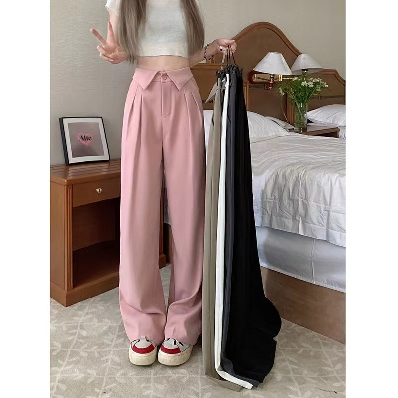 Celana kasual untuk wanita 2023 musim panas longgar celana menggantung celana kaki lebar lurus pinggang tinggi mode ukuran besar setelan celana panjang