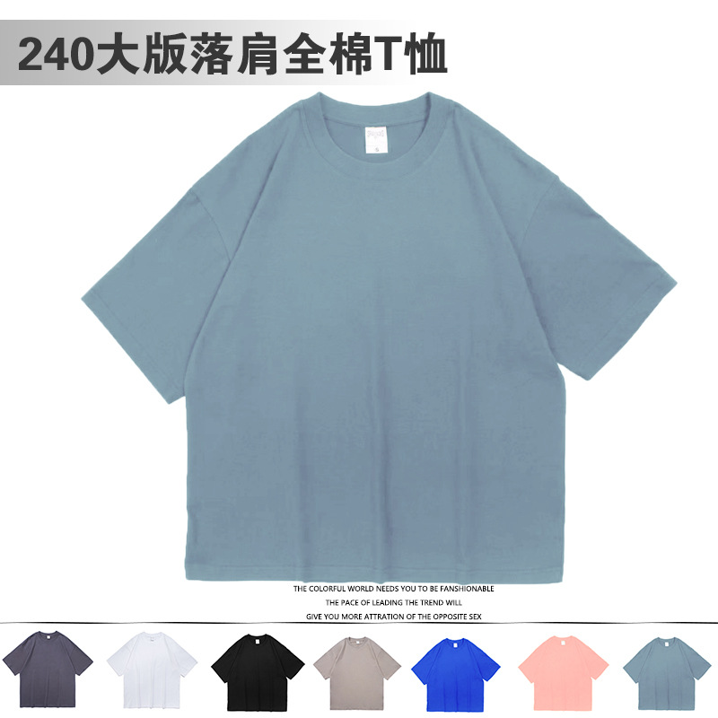 Kaos Lengan Pendek Trendi Longgar Nyaman dan Bernapas Model Bahu Jatuh Katun Murni Versi Besar 240 Gram Musim Panas