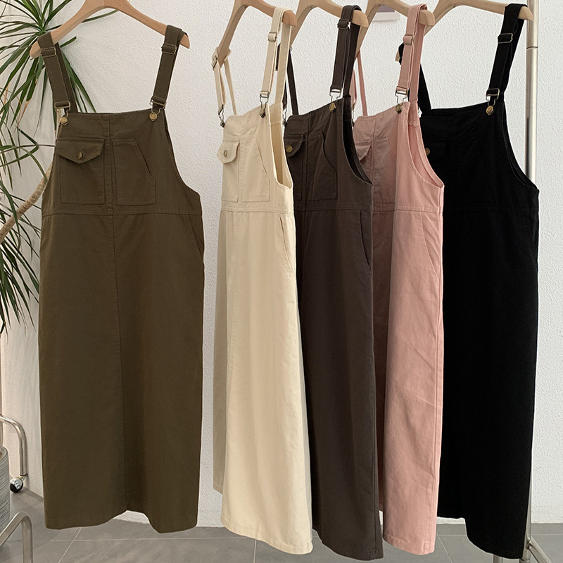 [Bizheng] Gaun Rompi Dua Potong Palsu Gaya Korea Baru Musim Panas 2025 Rok Panjang Longgar Wanita 3860
