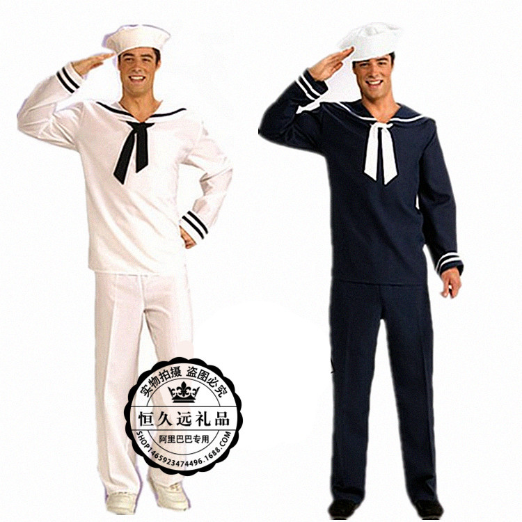 Halloween setelan pelaut Angkatan Laut pria jas penampilan panggung angkatan laut pesta jas biru putih