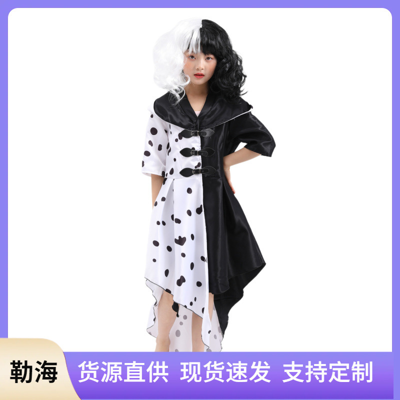 Halloween 101 anjing setia cos penyihir hitam dan putih kuila Deville spot gaun panggung pakaian pertunjukan