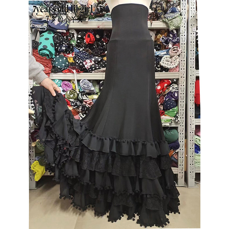 Baju dansa Flamenco Flamengo rok tari Spanyol baju ketat rok ruffle bertingkat DTT98
