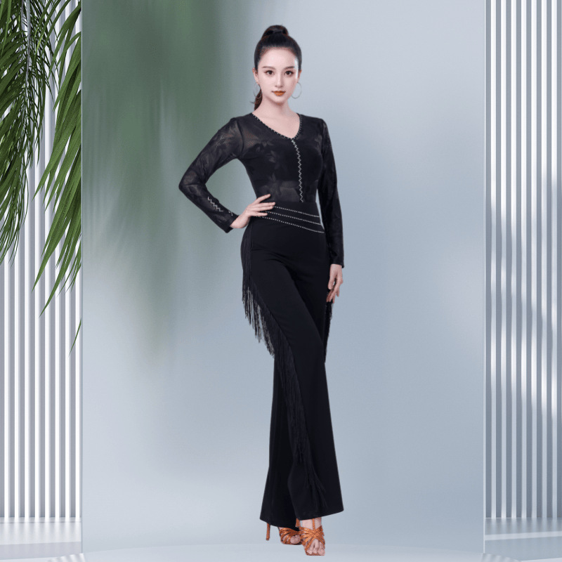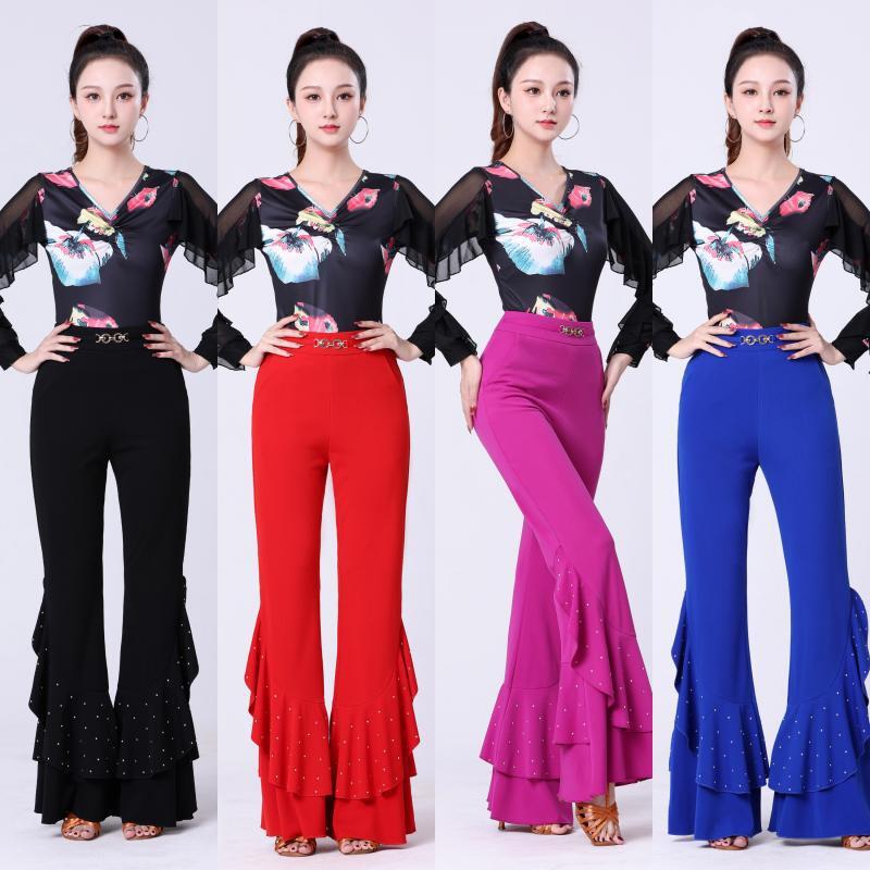 Celana dansa Latin wanita dewasa, celana panjang rumbai, pakaian dansa persegi, celana dansa modern