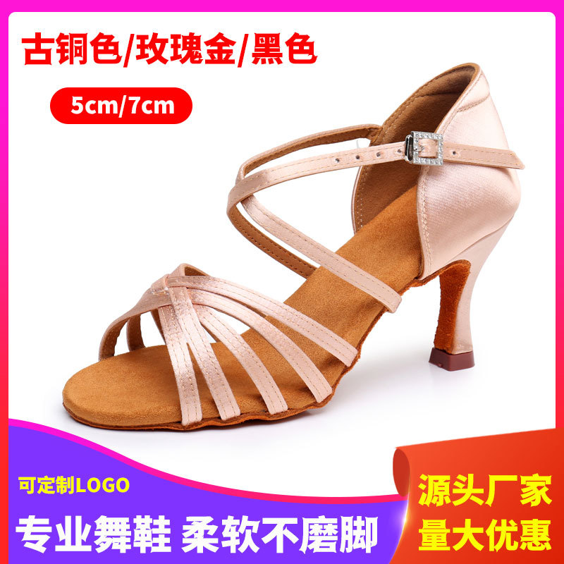 Sepatu dansa Latin satin sutra pasokan langsung lintas batas sepatu dansa wanita standar nasional Sha Sha sepatu dansa wanita dewasa 5/7cm