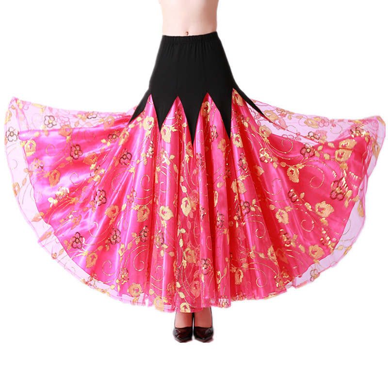 Rok dansa Modern setelan kompetisi rok ayun dansa ballroom rok panjang Waltz rok dansa berpayet