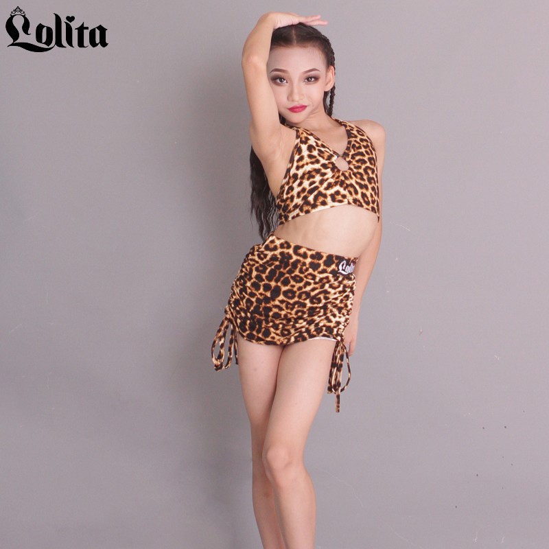Lolita setelan latihan dansa Latin anak, pakaian pertunjukan anak perempuan, baju latihan dansa Latin, pakaian latihan dansa anak perempuan