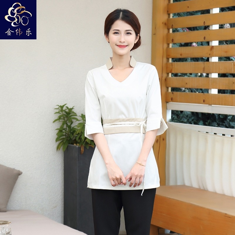 Pakaian kerja salon kecantikan baru pakaian kerja toko mandi kaki pemetik telinga pijat minyak mendorong teknisi pakaian kerja setelan K018