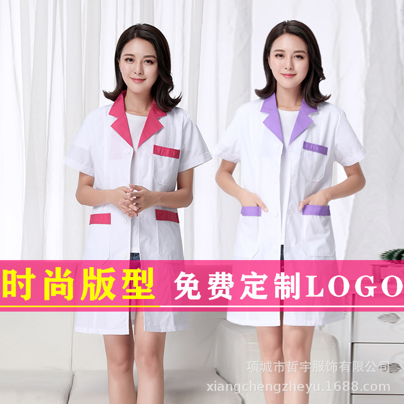 Baju wanita bordir tato, baju kerja kecantikan salon kecantikan, gaun putih Korea kelas atas lengan pendek