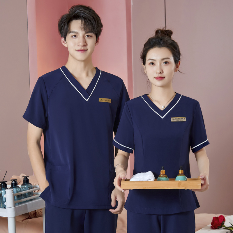 Baju kerja ahli kecantikan elastis setengah lengan Pusat Kesehatan Pijat Kaki baju teknisi kecantikan medis pijat SPA diskon besar-besaran grosir