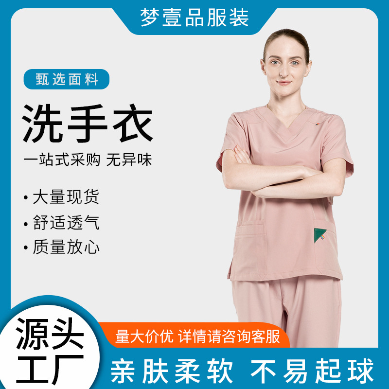 Dokter Suster ahli kecantikan lengan pendek kain kelas atas kain mencuci pakaian rumah sakit V-neck memakai lengan pendek mencuci pakaian