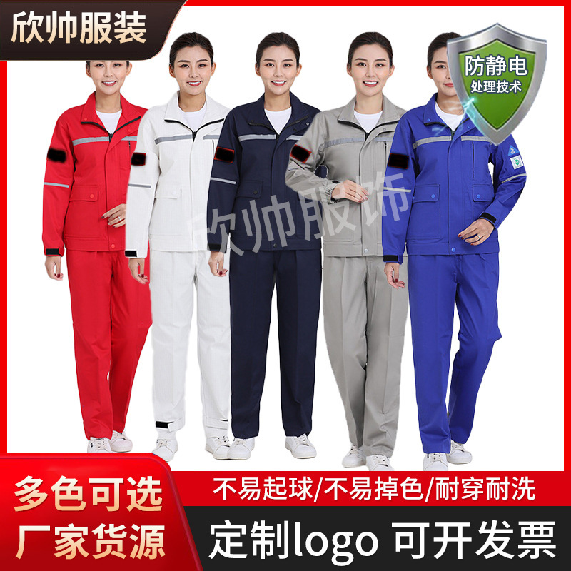 Pakaian kerja katun murni, baju kerja anti-api anti-statis, setelan Musim Semi dan musim gugur untuk pria dan wanita, pabrik tukang las, logo pelindung kerja