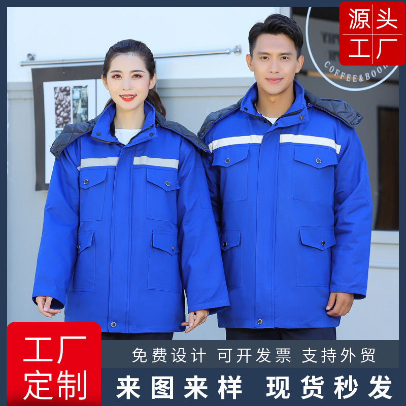 Mantel musim dingin bantalan katun, pakaian pelindung empuk, katun, anti dingin, strip reflektif, bisa dilepas, mantel katun empuk, mantel overall