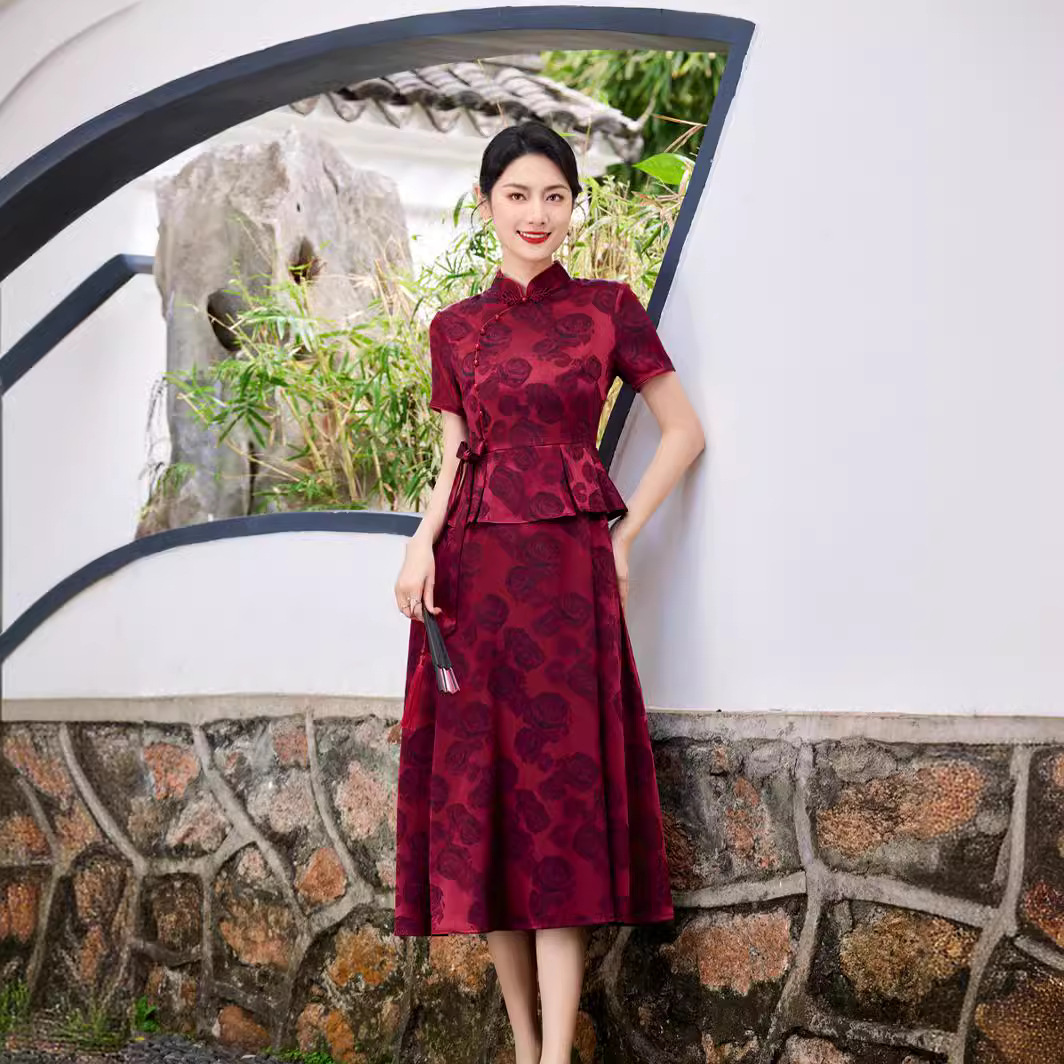 Gaun malam cheongsam gaya nasional retro, baru ramping cocok untuk Republik muda Tiongkok gaya nasional dapat dipakai harian