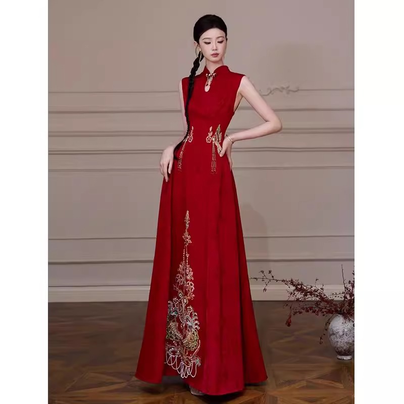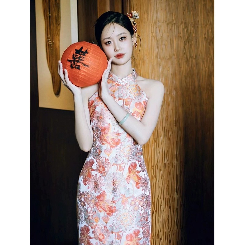Cheongsam Gantung Leher Gaya Tiongkok Baru Pakaian Bersulang Merah Gaun Pertunangan Pengantin Wanita Jubah Pagi Pernikahan Niche Mewah Ringan Musim Panas