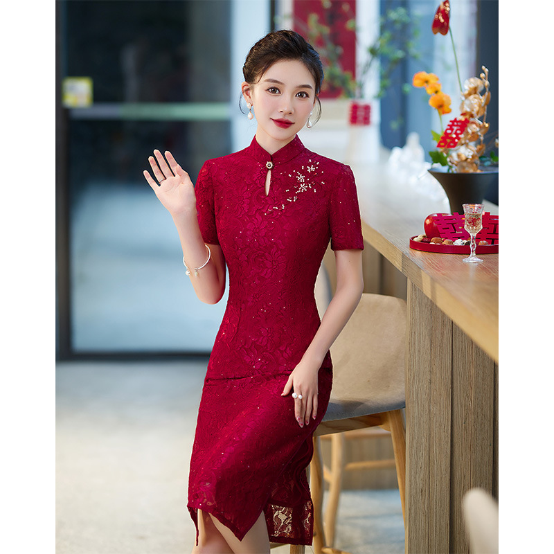 Cheongsam 2025 Pakaian Bersulang Retro Model Baru Modifikasi Pengantin Wanita Gaun Pernikahan Gaya Tiongkok Baru Pertunangan Warna Merah Lengan Pendek Wanita