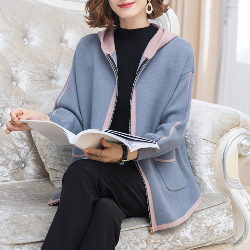 Pakaian Musim Semi dan Musim Gugur Ibu Jaket Rajut Model Baru 2025 Kardigan Panjang Sedang Sweater Wanita Paruh Baya Ukuran Besar Bertopi