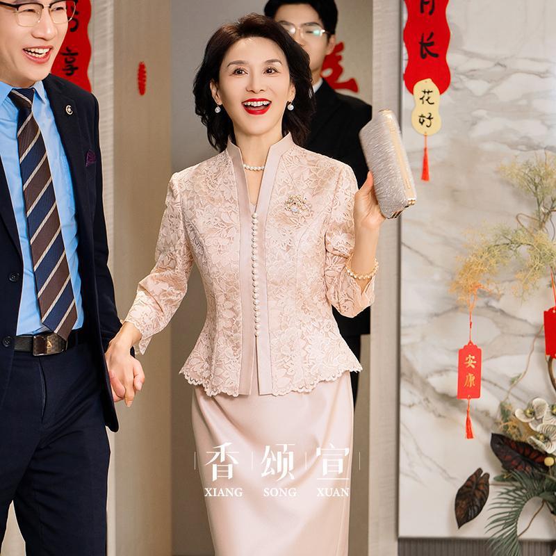 Xi gaun ibu mertua 2022 musim semi/musim panas, gaun jamuan pernikahan ibu dua potong, gaun musim gugur untuk ibu dan orang tua