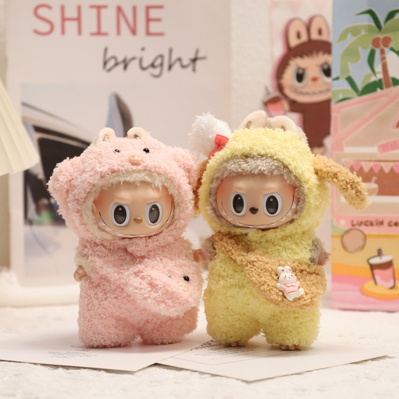 一代二代盲盒毛绒公仔挂件Labubu衣服钥匙扣拉布布娃娃衣帽子套装