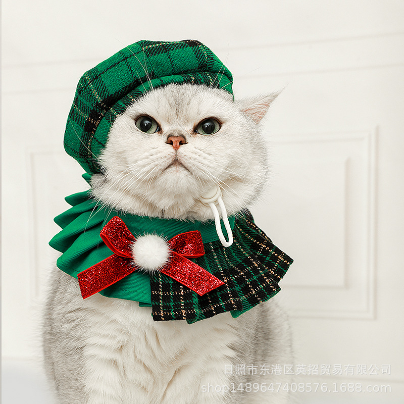 猫咪圣诞节帽子项圈围兜狗狗饰品衣服编织手工装扮宠物围巾围脖