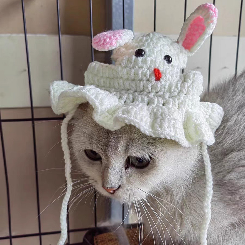 Topi Tenun Wol Kucing Topi Dog Anjing Kecil Kerajinan Tangan Merenda Lucu Aksesoris Hiasan Kepala Topi Variasi