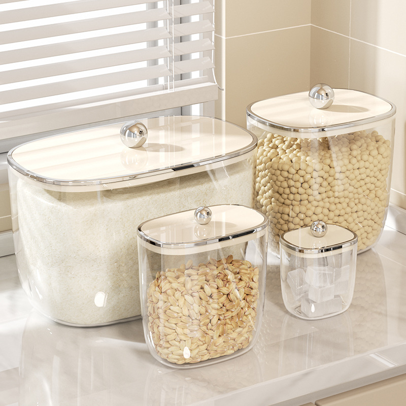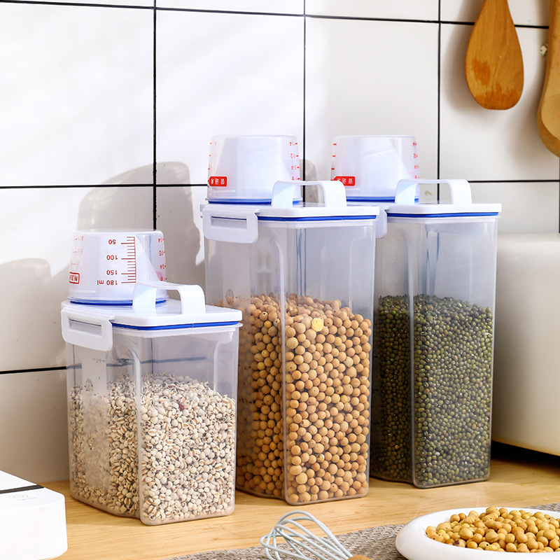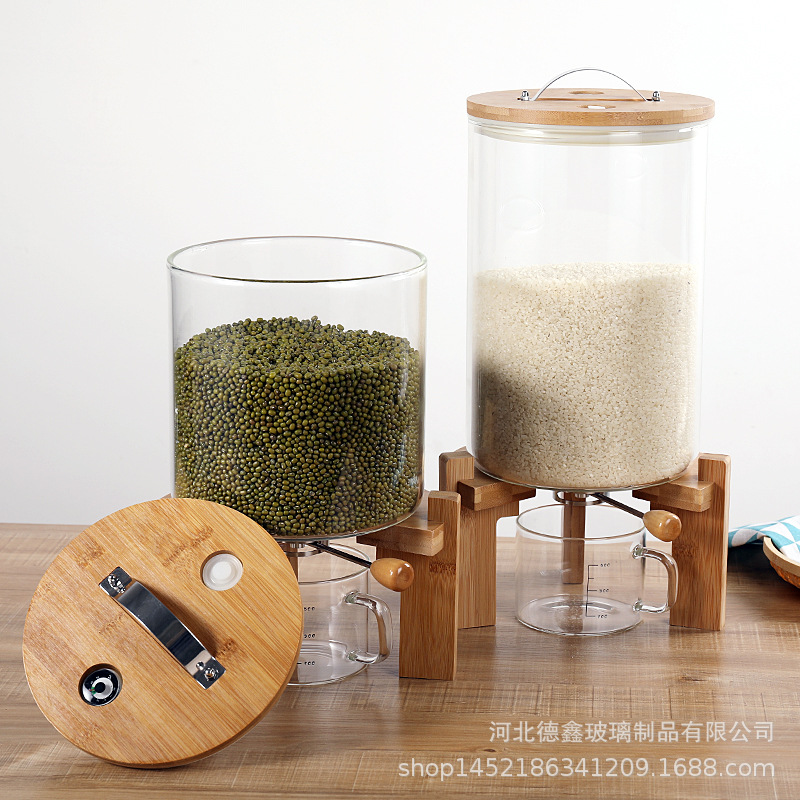 Borosilikat gelas pengukur beras, toples beras multi-grain, kotak penyimpanan nasi dan kelembapan besar, anti serangga, multi-grain dengan dasar