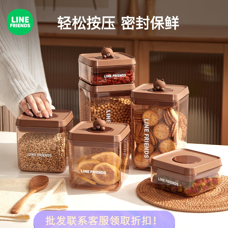 LINE FRIENDS Kaleng Tersegel Plastik Ember Beras Rumah Tangga Kotak Makanan Vakum Khusus untuk Kimchi