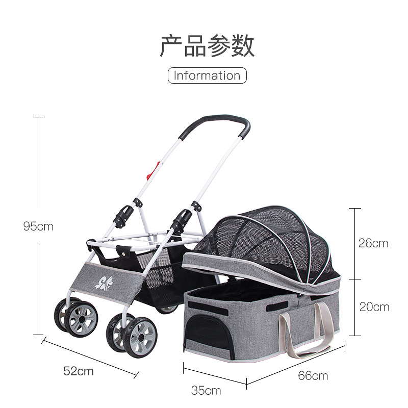 Kereta Dorong Hewan Peliharaan Lipat Ringan Model Bisa Dipisah Anjing Model Kecil dan Menengah Anjing Kereta Dorong Kecil Keluar Mobil Anjing Kereta Dorong Kucing