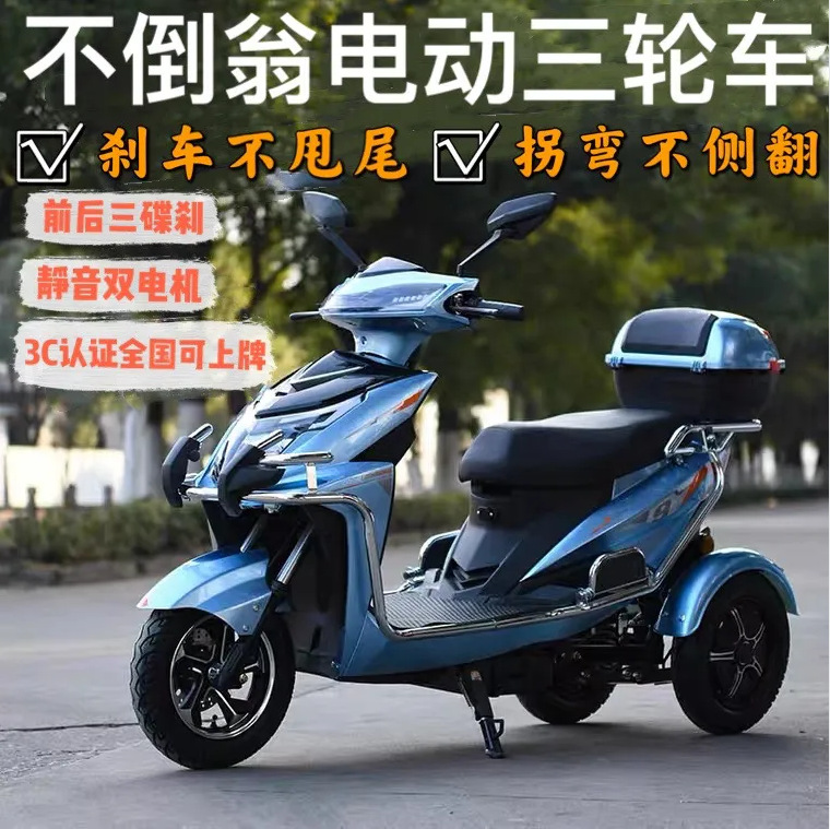 Tumbler sepeda roda tiga listrik dewasa, roda tiga ayun Motor ganda suspensi independen jalan santai kecepatan tinggi