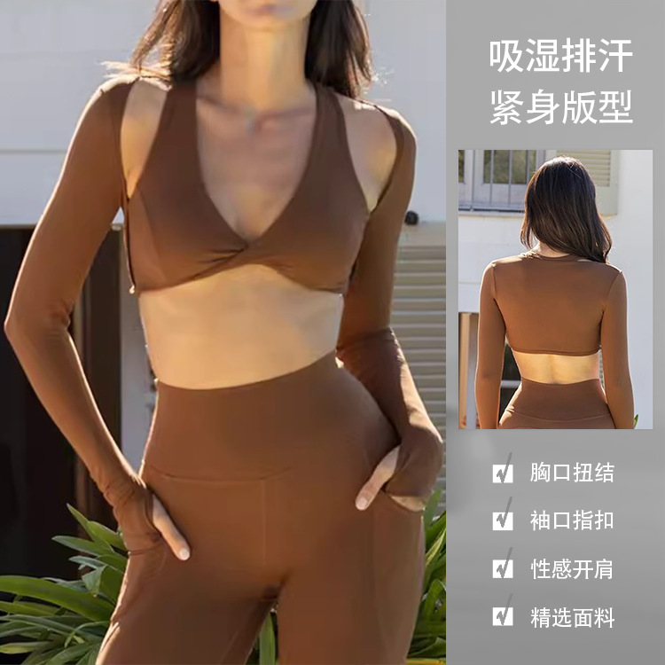Pakaian Yoga Lintas Batas Eropa dan Amerika Atasan Lengan Panjang Gaya Senior Pakaian Kebugaran Telanjang 2 Set Olahraga Lari Luar Ruangan Palsu