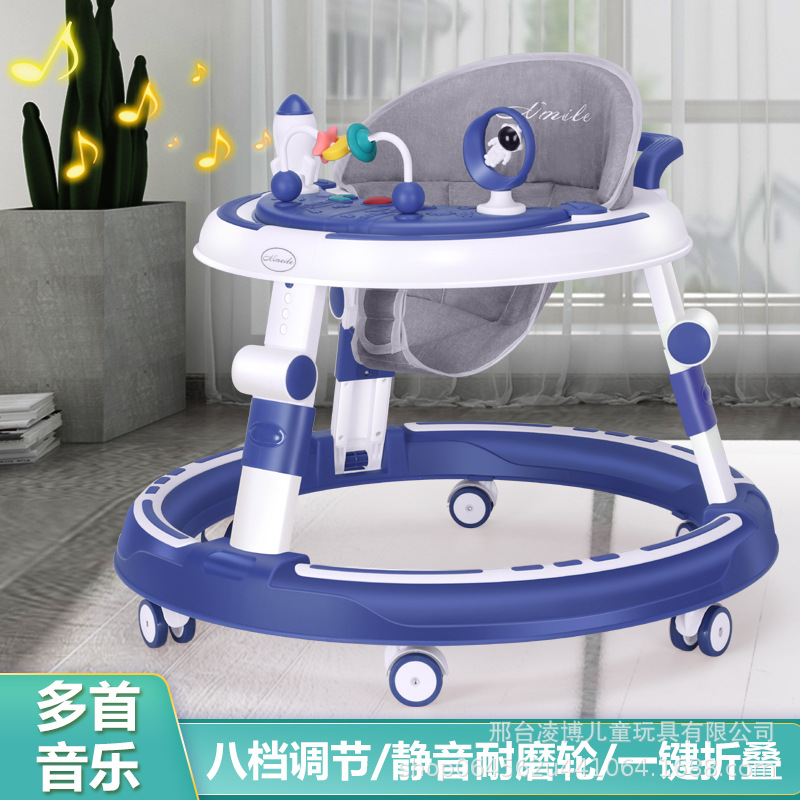 Baby walker 6-18 bulan sasis diperbesar musik ringan penyesuaian ketinggian baby walker hadiah ulang tahun