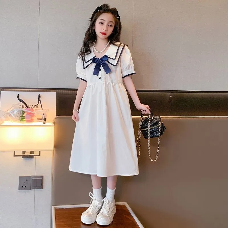 Gaun musim panas anak perempuan gaya Barat gaun modis kasual temperamen anak-anak sedang dan besar pakaian musim panas anak perempuan kecil gaya kuliah