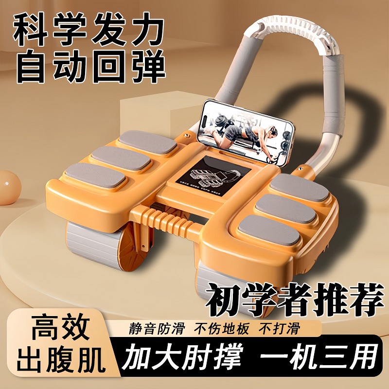 Pengencang perut otomatis, roda perut rebound otomatis untuk latihan pelangsing otot perut, peralatan kebugaran penopang siku rumah tangga pria dan wanita