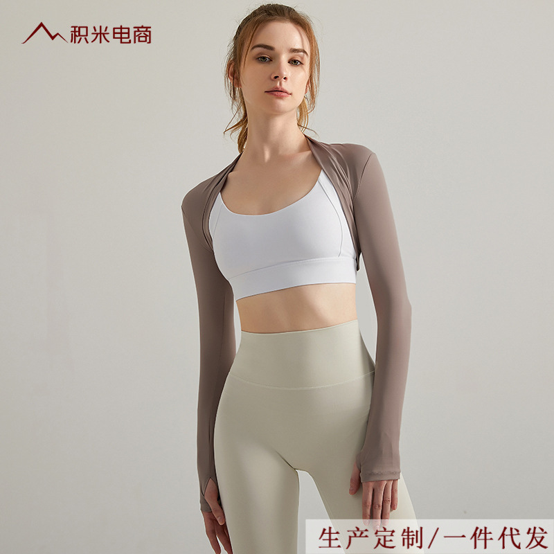 Selendang dansa atasan olahraga wanita, kardigan fitness selendang pendek elegan yoga cepat kering